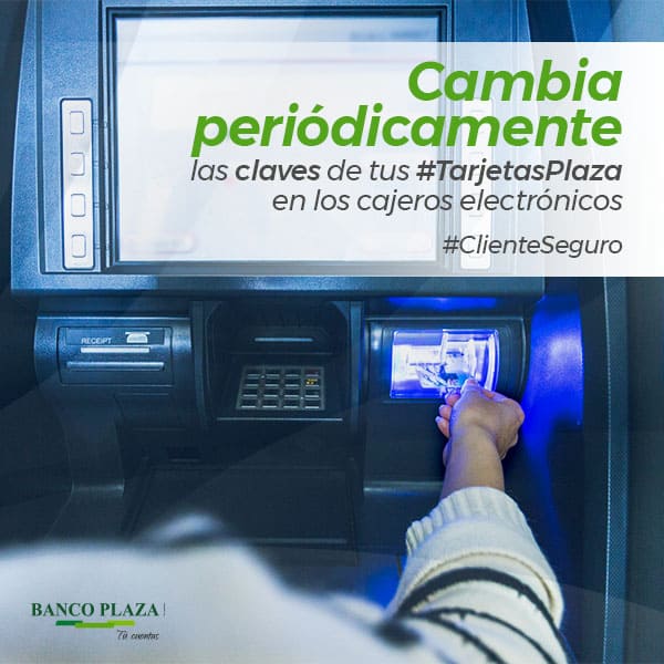 - Dirigirte a un Cajero Automático Banco Plaza.