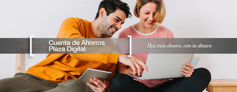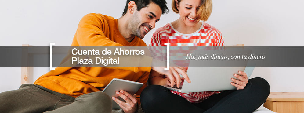 Todas las ventajas de Tu Cuenta de Ahorros ahora en formato digital. Mueve tu dinero sin libreta a través de tus canales y servicios Plaza. Gana rendimientos diarios mientras tu dinero sigue disponible los 365 días.