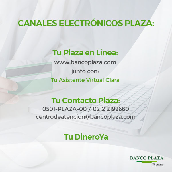- Moviliza tus fondos únicamente a través de los canales electrónicos del Banco Plaza con la tarjeta de débito Maestro Banco Plaza.